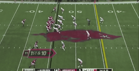 Passing game: The 4-2-5 allowed Auburn to play tight man cover 1 on 3rd downs. This tight pressure led to Hunter Henry only catching 1 ball (a second catch was called back for a penalty). Look for more of the same with AJ Derby drawing press coverage with no free releases. CB Jonathon Mincy had 9 tackles against Arkansas which was a season high, so losing him to suspension - however long that lasts - will hurt the Tiger secondary. If Arkansas can prove that they can throw the ball downfield then they will force Auburn to move into a softer coverage.