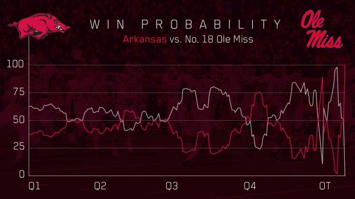The ESPN Win Probability Chart from the game is insane. And somehow it's only the sixth-craziest such chart from this season. I'd like to know the other five.