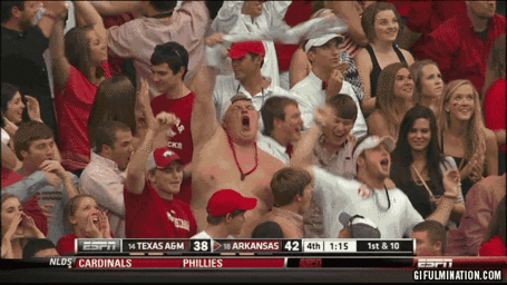 After a month of making me think that the balance beam was finally the 'Backs' friend, Fate decided to dash all my hopes. Borsellino managed to eke out a 9.65 after barely sticking a complicated Arabian on that 4-inch plank, which made her musical choice-- R. Kelly's "I Believe I Can Fly"--SUPER ironic. While she struggled, Florida's Kiersten Wang gazelled her way through a solid floor routine to what sounded like arcade music—eh. Frier and fellow freshman Sydnie Dillard executed complicated, athletic beam exercises with minimal bobbles, but Fate decided to have another go at poor Shelby Salmon, who for the second week in a row crashed, this time on her bum. Satan also pushed Glover off the beam after she could not stick a layout. Salt in wounds for Razorback fans as Florida's Dickerson nailed two floor passes and incorporated some adorable dance elements that really should qualify her for the Olympics. She is not my friend At end of 3rd rotation, Arkansas trailed 146.750 to the Gators' 148.125.