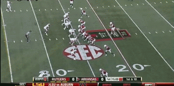 He will also send pressure with man coverage or cover 0 across the board as he did in the game against Arkansas. The 2013 Arkansas defense used a lot of quarters coverage and Smith likes to use a version of this that's a split field coverage. In it, one side of the formation plays a cover 2 and the other side is in a 1/4 look. Smith has a more simplified system in this area than what Ash had, and from his interviews has made communication and simplifying play calls a top priority.