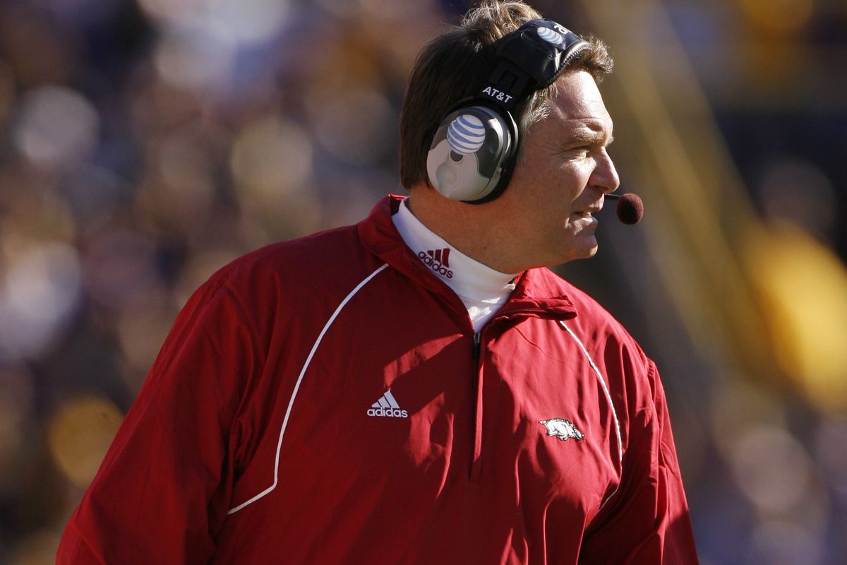 Here's the background. Nutt was coming under a lot of heat in 2005. It was his eighth season in Fayetteville, and clearly on his way to his second consecutive losing season. Nutt ran the type of conservative offense many mistakenly associate with Bielema (at least before the Ole Miss game) and adamantly refuted any notion that he should hire an offensive coordinator to bring some life into the offense. Nutt called his own plays, so he didn't believe it was necessary.