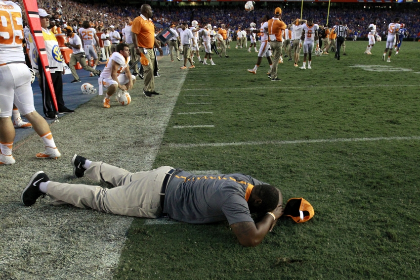 Coach Butch Jones is getting absolutely killed for not trying for two points after scoring a touchdown that put the Vols up by 12 late in the fourth. He was never clear as to his decision-making in that situation. Jones said in his presser that his chart said to kick the field goal and that he trusted his defense to make the stops. Now we all want to see his chart, which is obviously different than every other coach's in America.