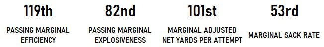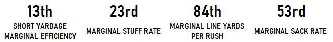 The defensive line, to its credit, did not have a similar problem. Led by Sosa Agim, the front was very disruptive, ranking in the top 25 in short yardage defense and stuff rate. It was also decent at pressuring the quarterback.